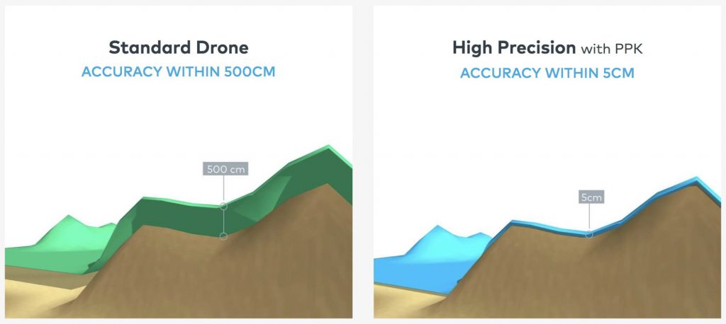 Si ya era una revolución el cambio el mapeado tradicional versus el mapeado con drones, ahora, y gracias a la tecnología RTK y PPK, la velocidad y precisión en los trabajos topográficos con drones ha llegado a su punto más alto.